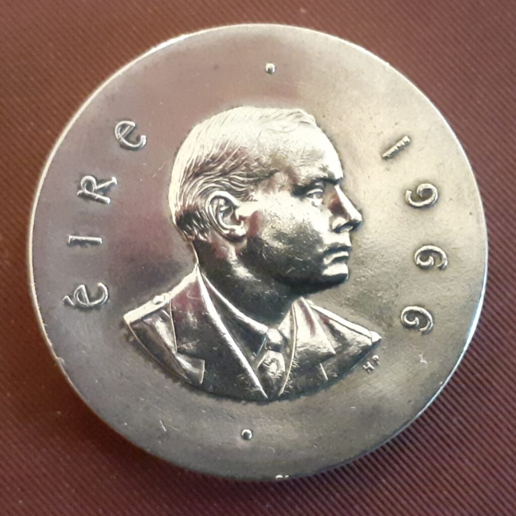 Struck in an alloy of 83% silver, and copper, the coin was issued to mark the fiftieth anniversary of the Easter Rising of 1916, and was the first commemorative coin issued by Ireland, and unusually so, was without the traditional national emblem of a harp.
