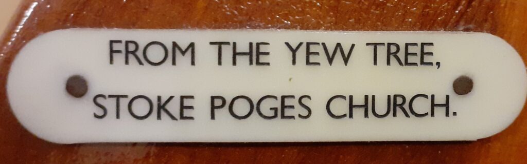 [ most probably the Revd. Robert Potter (1721-1804)], a photograph of a piece of wood said to be ‘From the Yew Tree Stoke Poges Church’., and a postcard view of ‘Stoke Poges Church Porch & Yew Tree.’