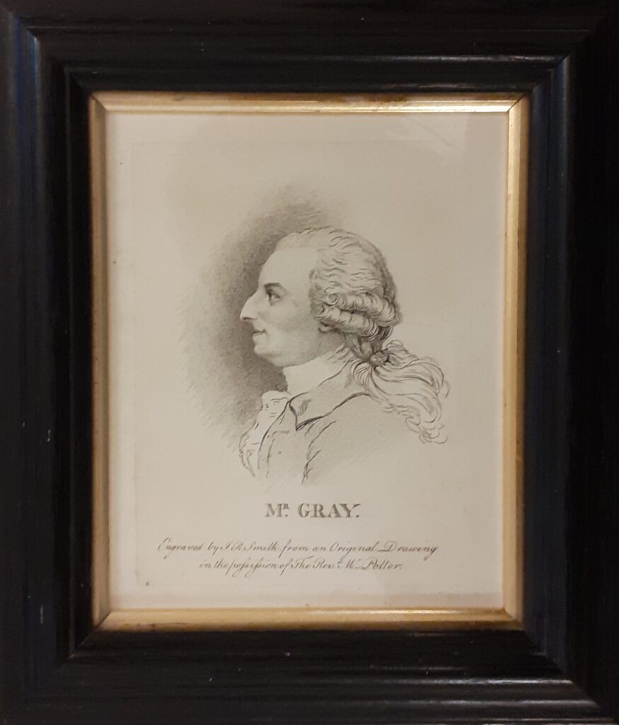 Preserved at Mount Rivers, and illustrated herewith is an engraving in mezzotint by John Raphael Smith (1751-1812) of Thomas Gray, ‘from an Original Drawing on the possession of the Revd. Mr. Potter’
